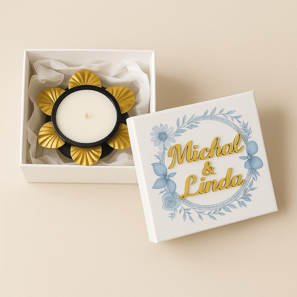 Perfect for weddings, bridal showers, baby showers, or upscale parties, these personalized decorative candles can be customized with names, dates, or a short message. Whether used as elegant home decor or thoughtful party favors, they add warmth and charm to any celebration — a beautiful way to say "thank you" with style.