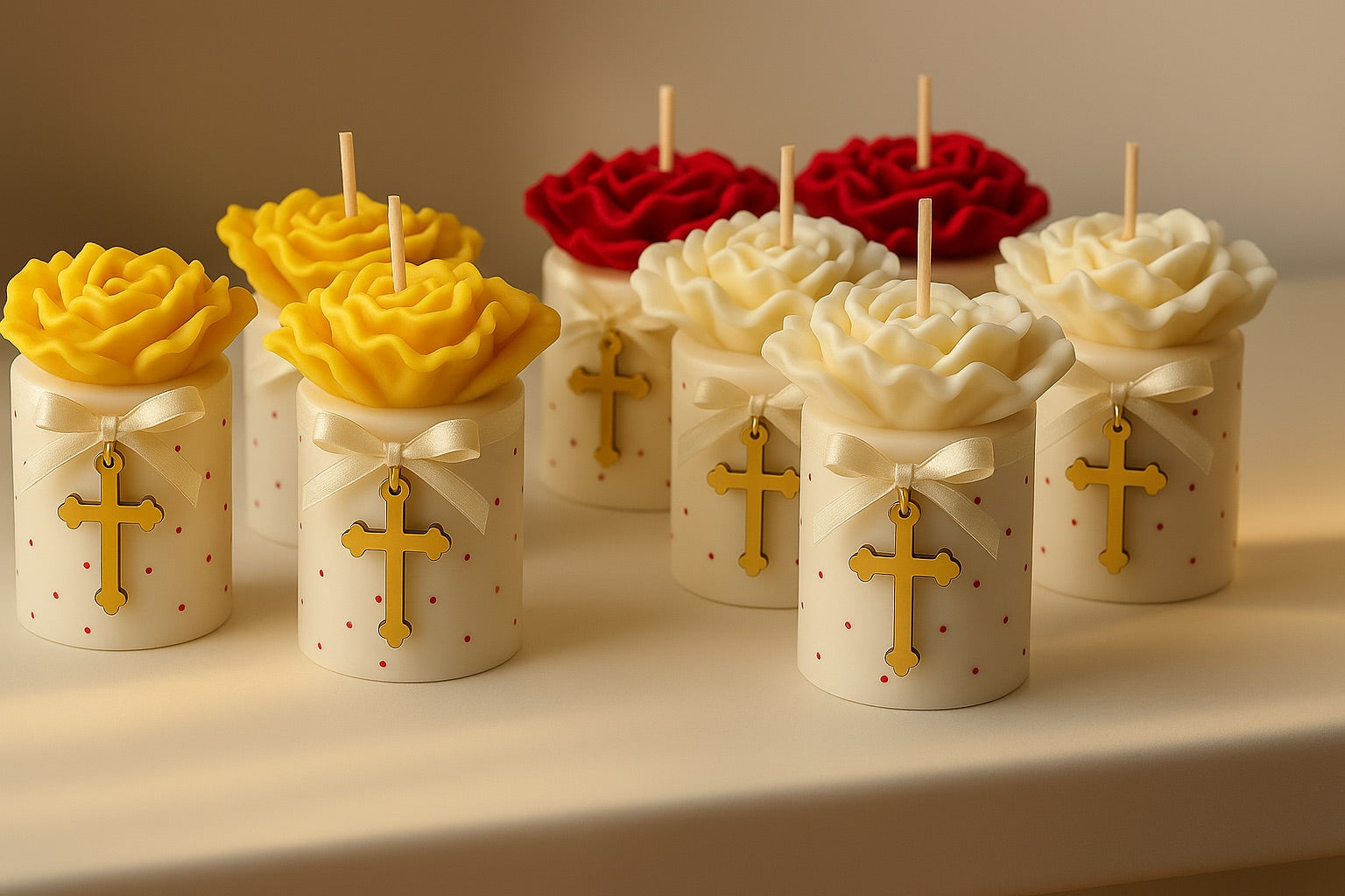 Thoughtfully handcrafted and beautifully packaged, these custom candles make meaningful keepsakes for baptisms, christenings, baby showers, or any spiritual gathering. A heartfelt way to thank your guests, these favors offer both beauty and sentiment — a lasting reminder of your special day and the blessings shared with loved ones.